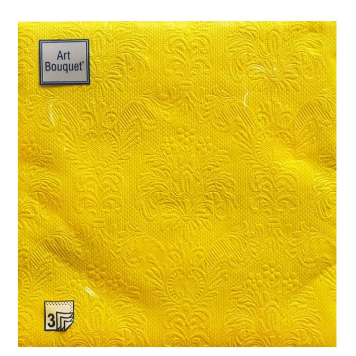 Салфетки бумажные ART BOUQUET Барокко ЖЕЛТЫЙ 33*33 3-сл.16 листов/12