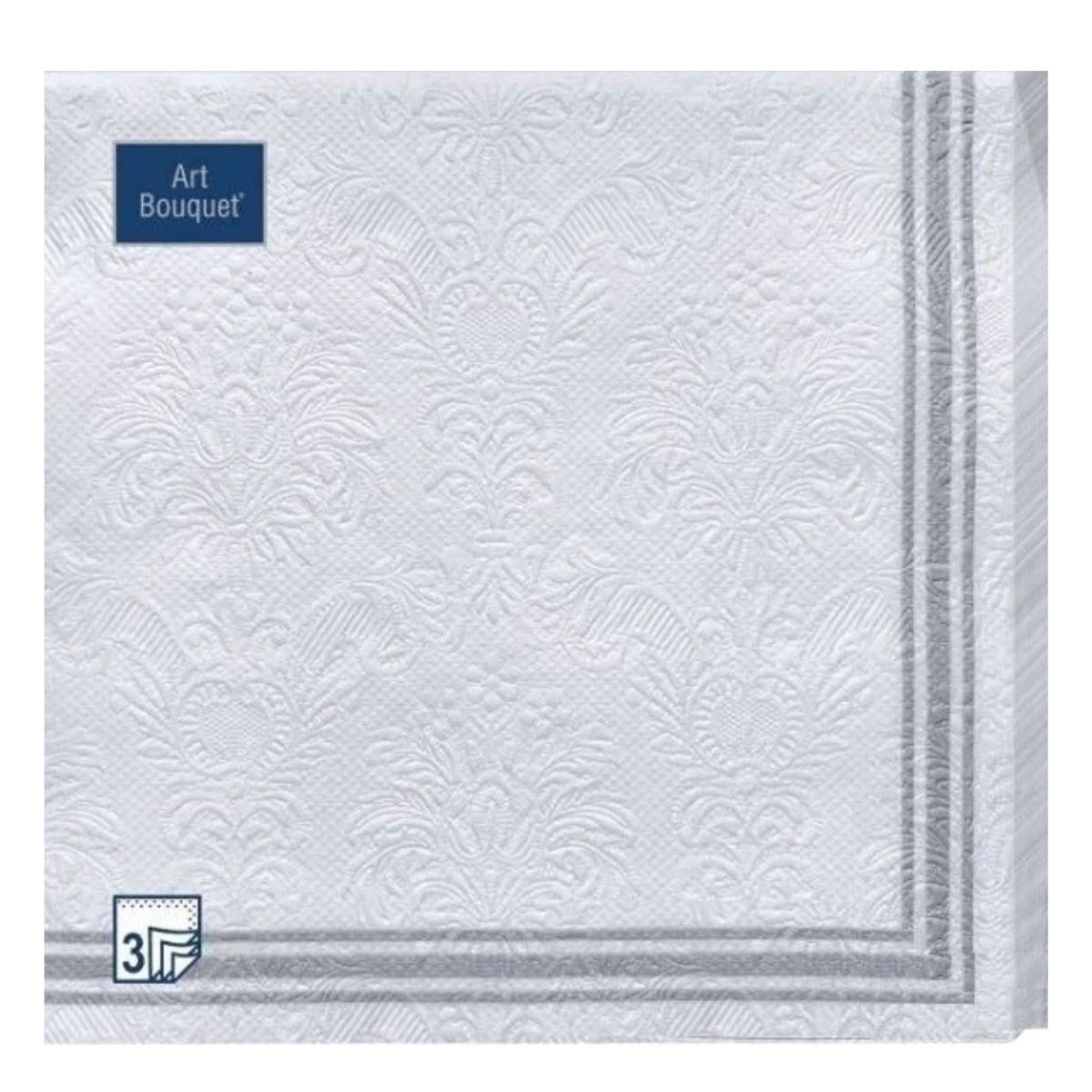 Салфетки бумажные ART BOUQUET Барокко СЕРЕБРЯНАЯ РАМКА 33*33 3-сл.16 листов/12