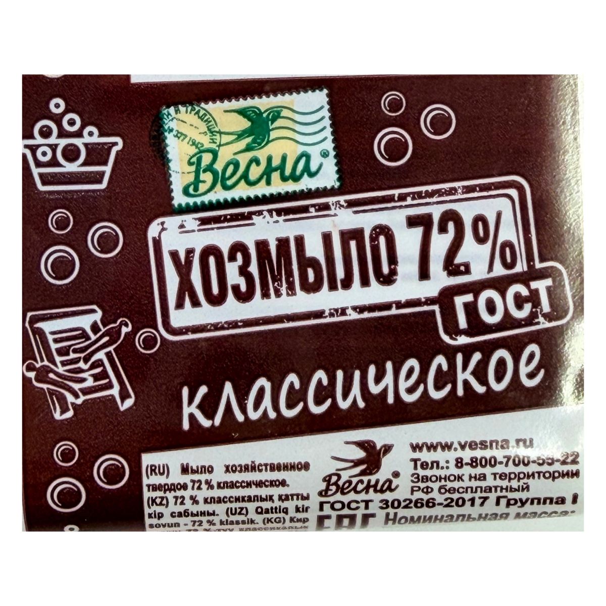 Мыло хозяйственное ХОЗМЫЛО классическое 140 г 72% ВЕСНА/4/44