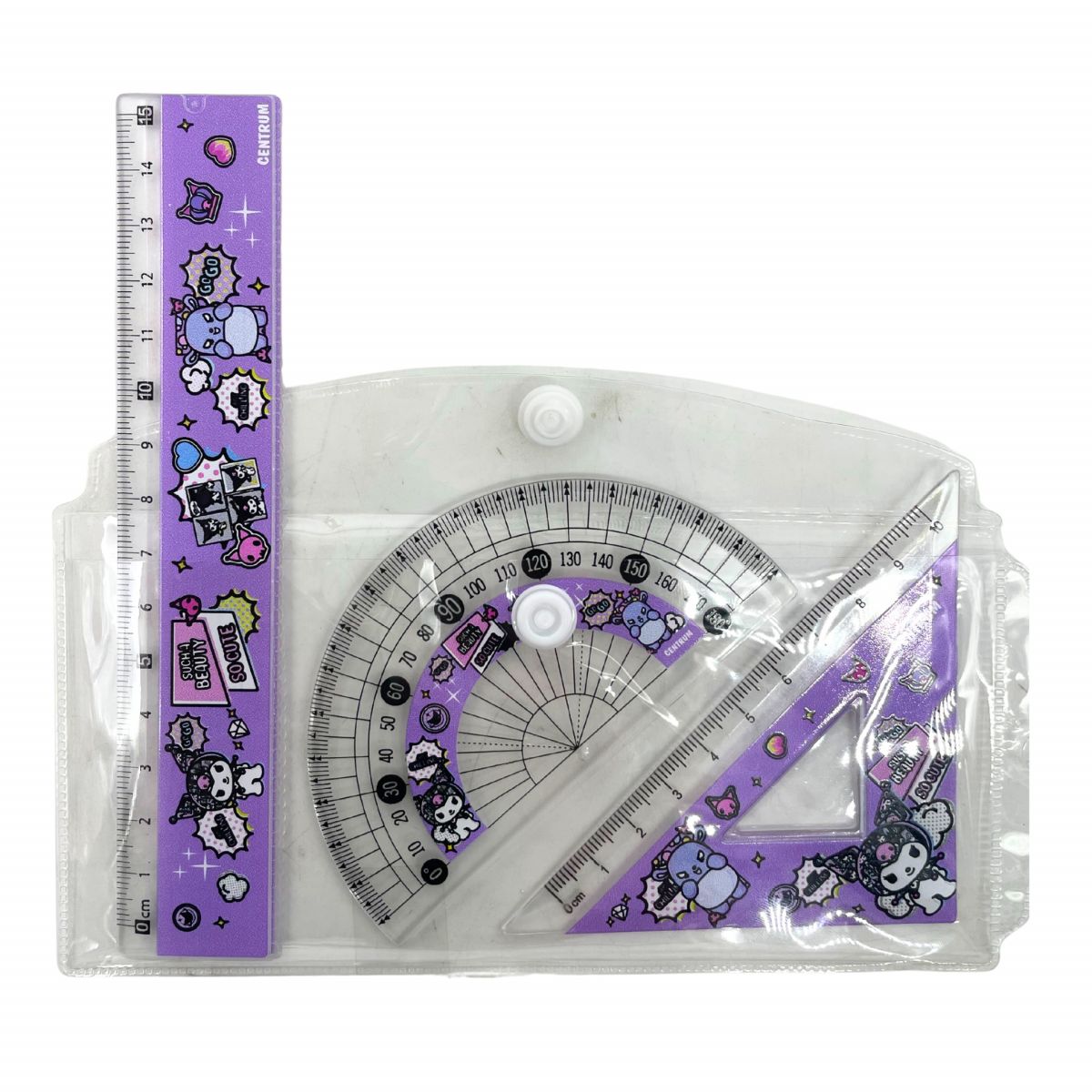 Набор линеек Куроми и друзья: линейка,треугольник,транспортир,3 шт.в ПВХ подвесе(76880)/15/480