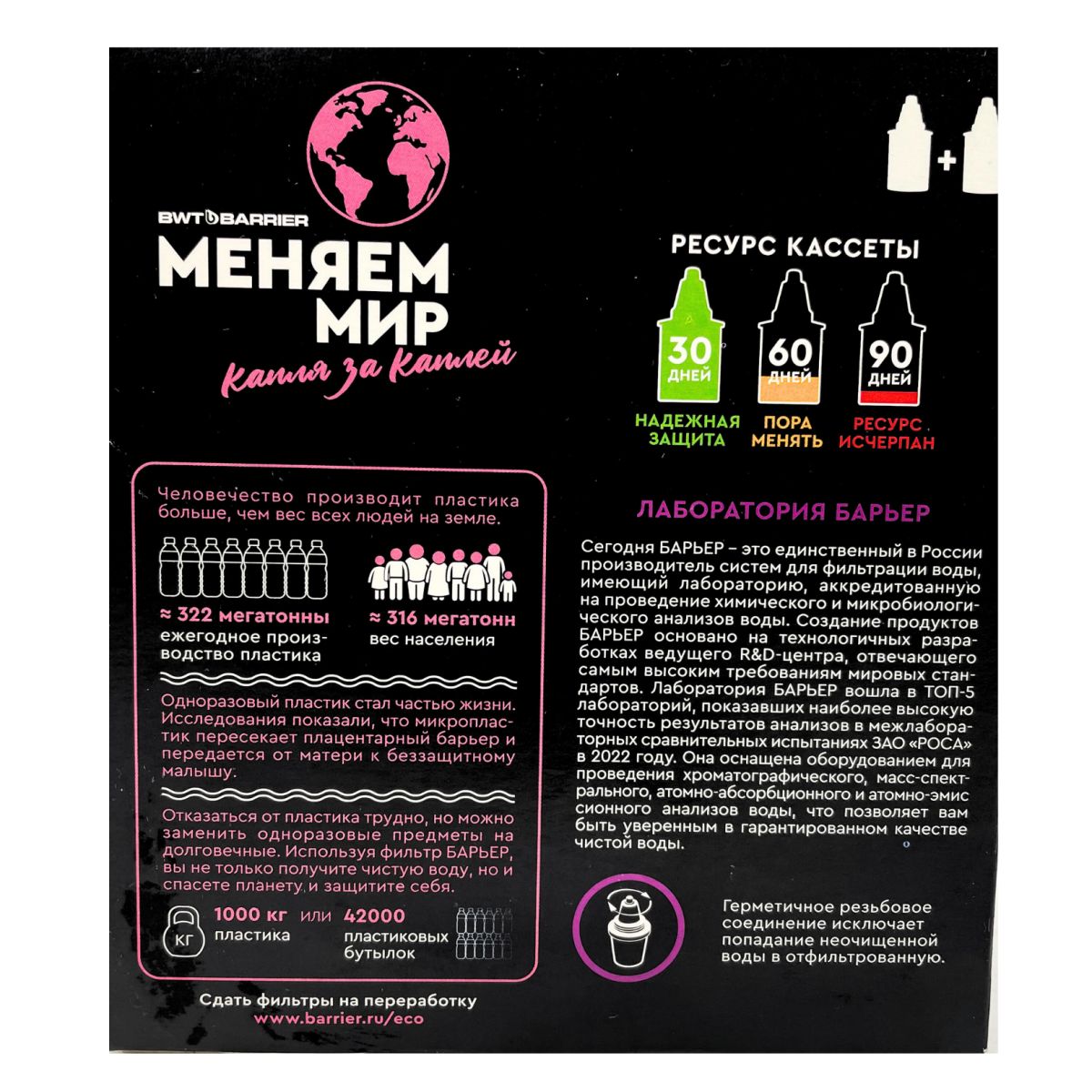 - Подходит для всех бытовых фильтров Барьер;