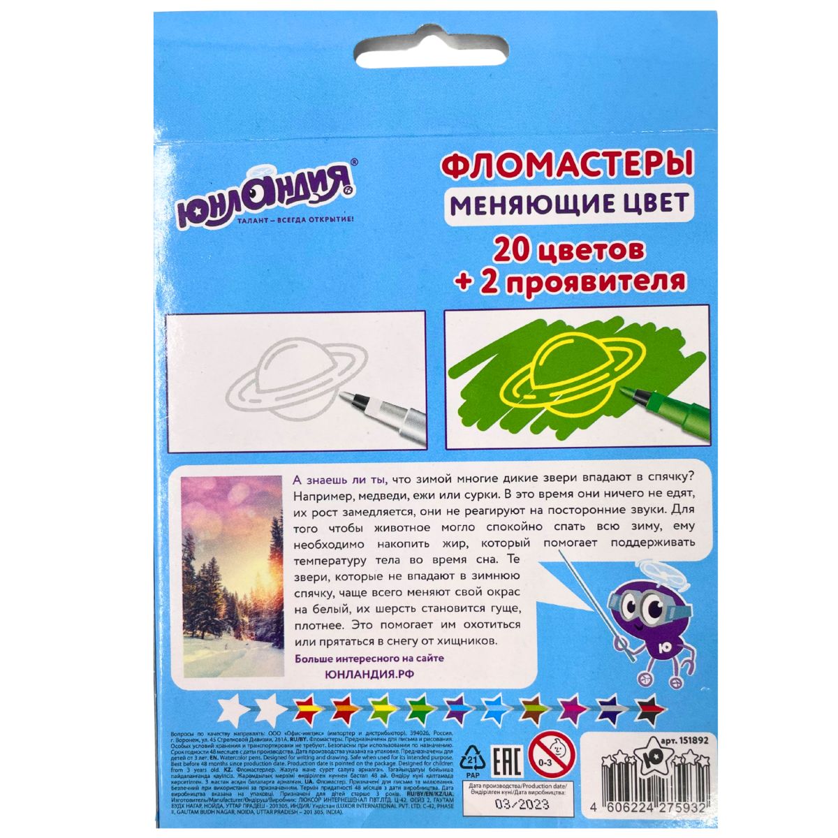 Фломастеры, меняющие цвет ЮНЛАНДИЯ 20 цв. + 2 прояв.ЮНЫЙ ВОЛШЕБНИК(151892)/1/12/144
