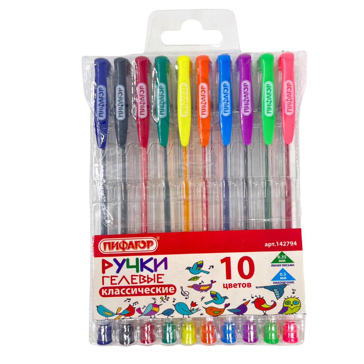 Ручки гелевые ПИФАГОР набор10 ЦВЕТОВ, корпус прозр., 0,35 мм(142794)/1/6/144