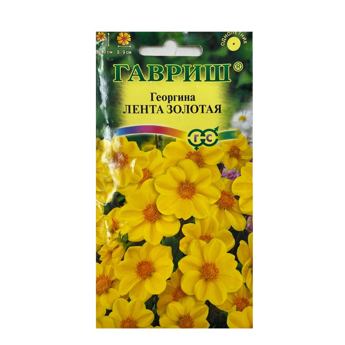 Пакетик с семенами георгина сорта «Лента Золотая» от компании Гавриш – это прекрасное дополнение к вашему саду! Этот сорт отличается своими яркими цветами и длительным периодом цветения.