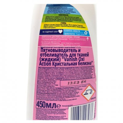Перед применением протестируйте средство на незаметном участке ткани. Растворите необходимое количество средства в воде согласно инструкции и замочите загрязненные вещи минимум на полчаса перед стиркой. СОВЕТ: Для достижения наилучших результатов используйте пятновыводитель VANISH непосредственно перед стиркой, чтобы избежать повторного загрязнения ткани.Пока нет отзывов. Будьте первым!