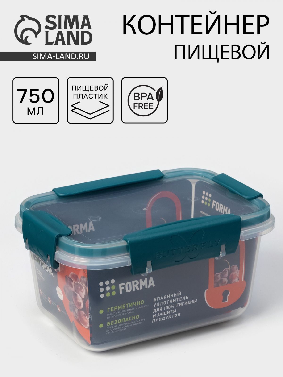 Контейнер 0,75л BUTTERFLY герметичный в ассортименте /1/16