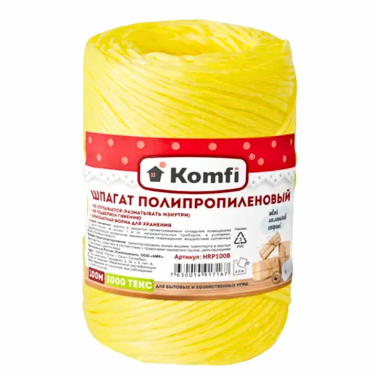 Изготовлен из высококачественного полипропилена, шпагат Komfi сохраняет свои свойства даже при воздействии влаги, ультрафиолетового излучения и низких температур.Удобство использования и экономичность