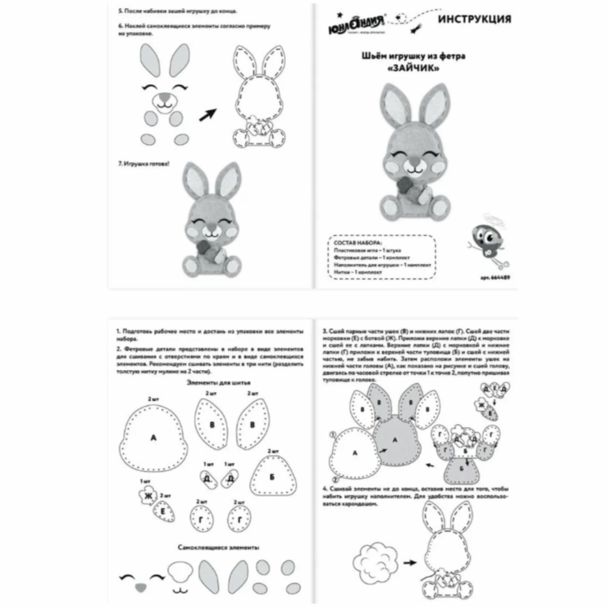 Набор для шитья игрушки из фетра "Зайчик",Юнландия(664489)/3