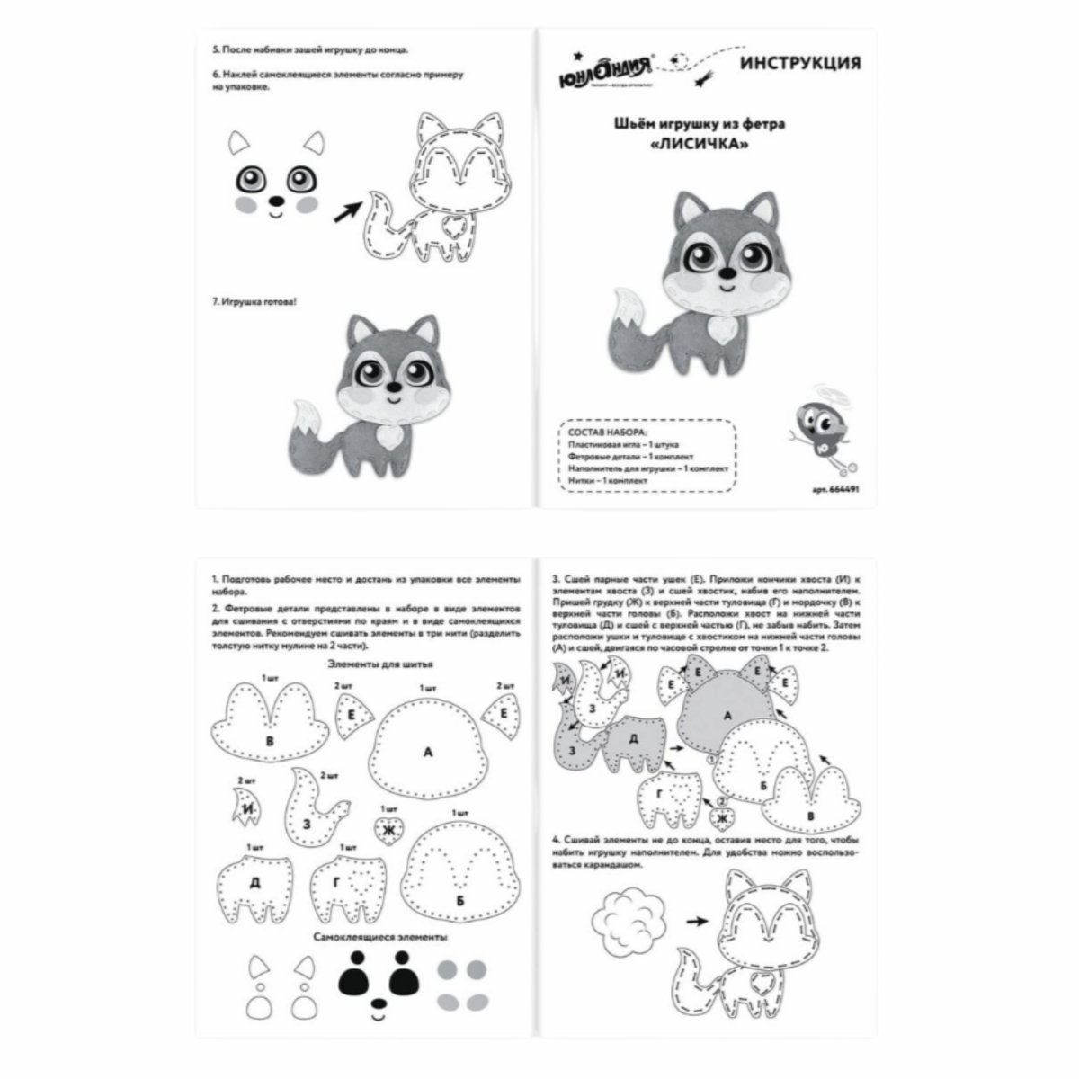 Набор для шитья игрушек из фетра «Лисенок», Юнландия