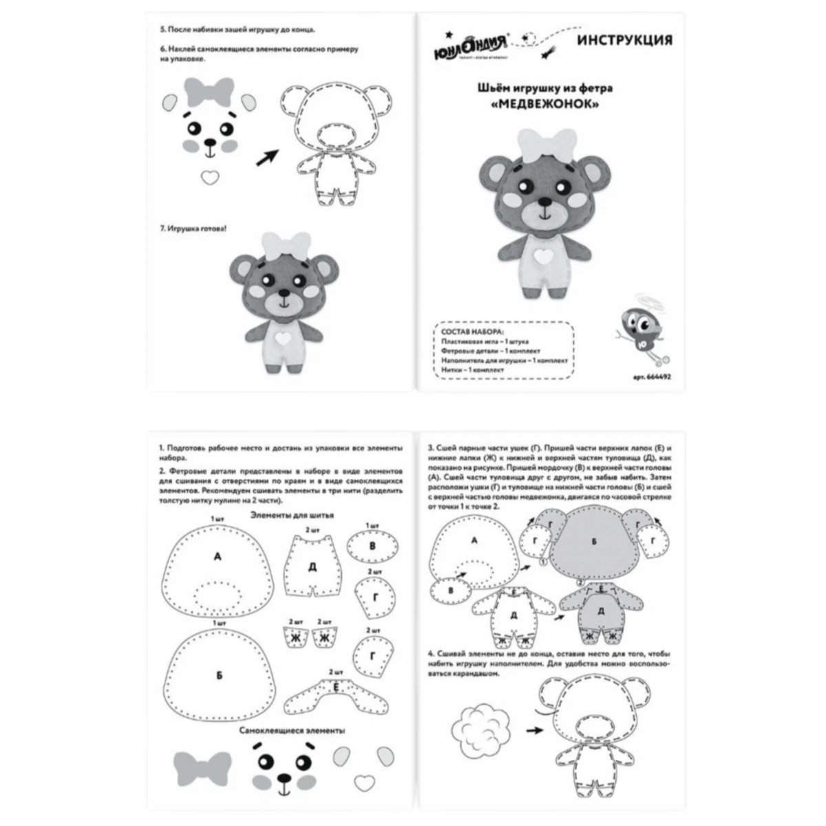 Набор д/шитья игрушки из фетра "Медвежонок",Юнландия(664492)/1/5