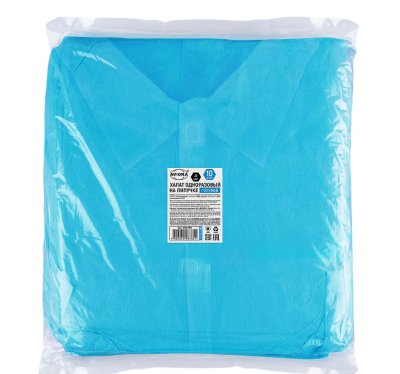 Халат одноразовый голубой р.52-56 25г/м2 (10шт в уп)1/10