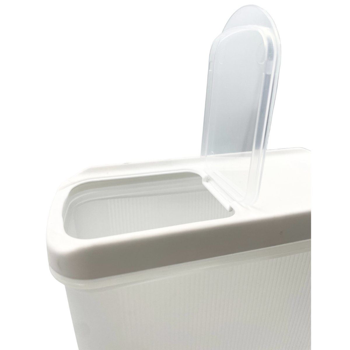 - Легкая крышка плотно закрывается, предотвращая попадание пыли и посторонних запахов внутрь емкости.
