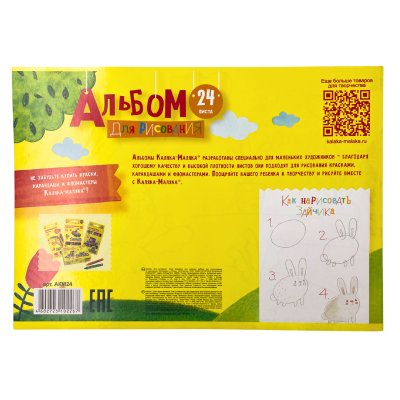 Альбом для рисования 24 листа А4 скрепка Каляка-Маляка