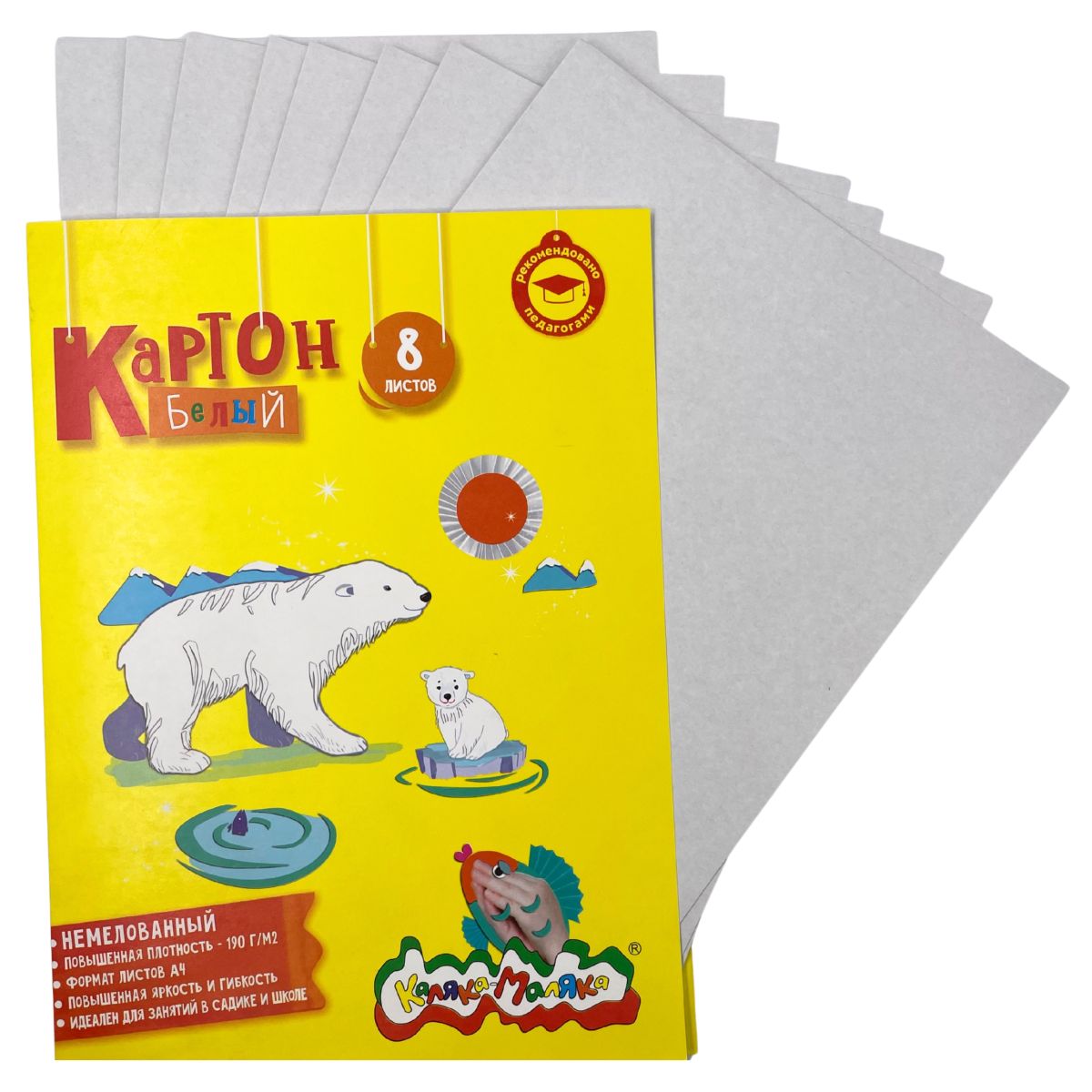Картон белый 8 листов, немелованный А4 199х278 мм Каляка-Маляка (160440)/50