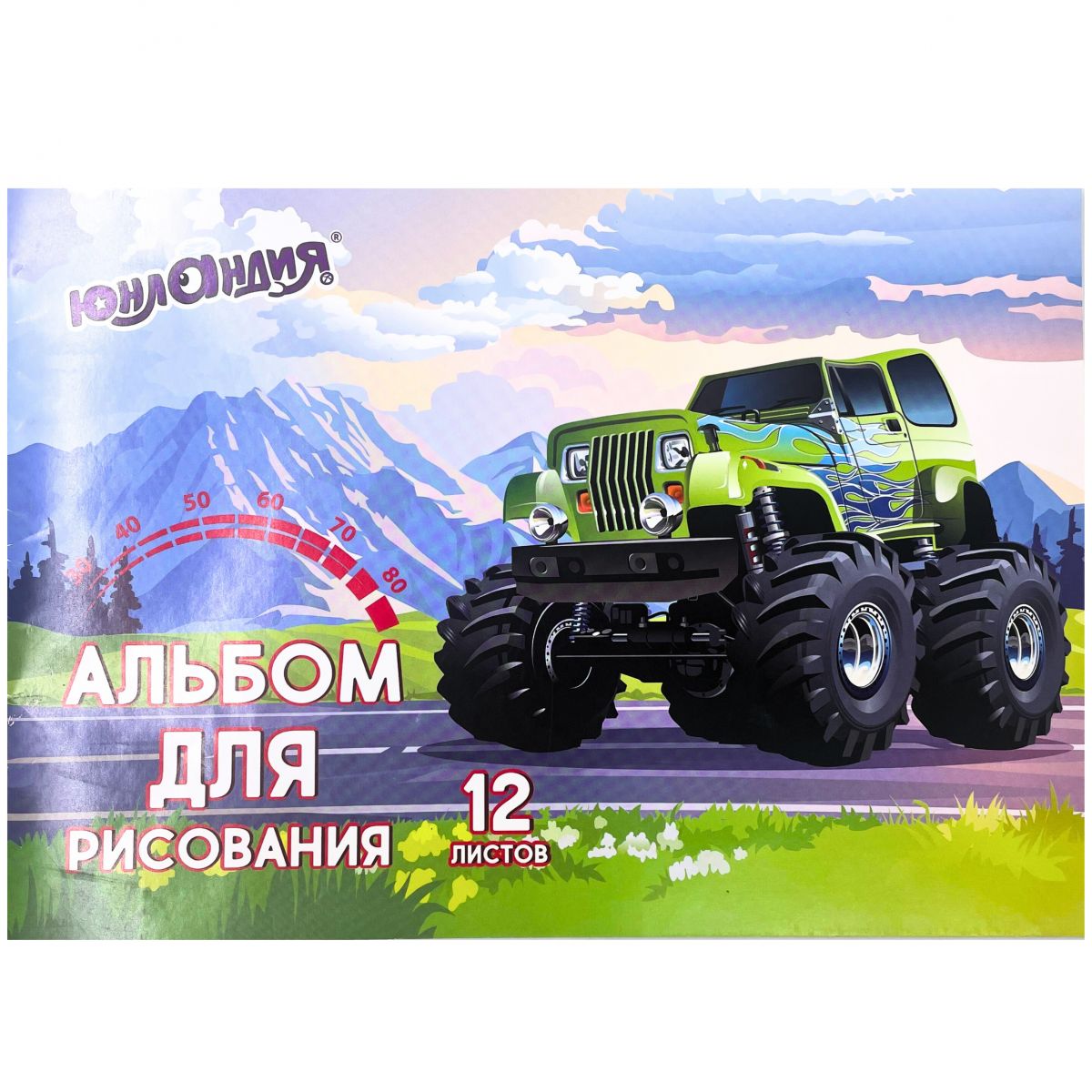 Альбом для рисования А4, 12 листов, скоба, обложка картон, ЮНЛАНДИЯ "Монстр-трак"(105041)/20