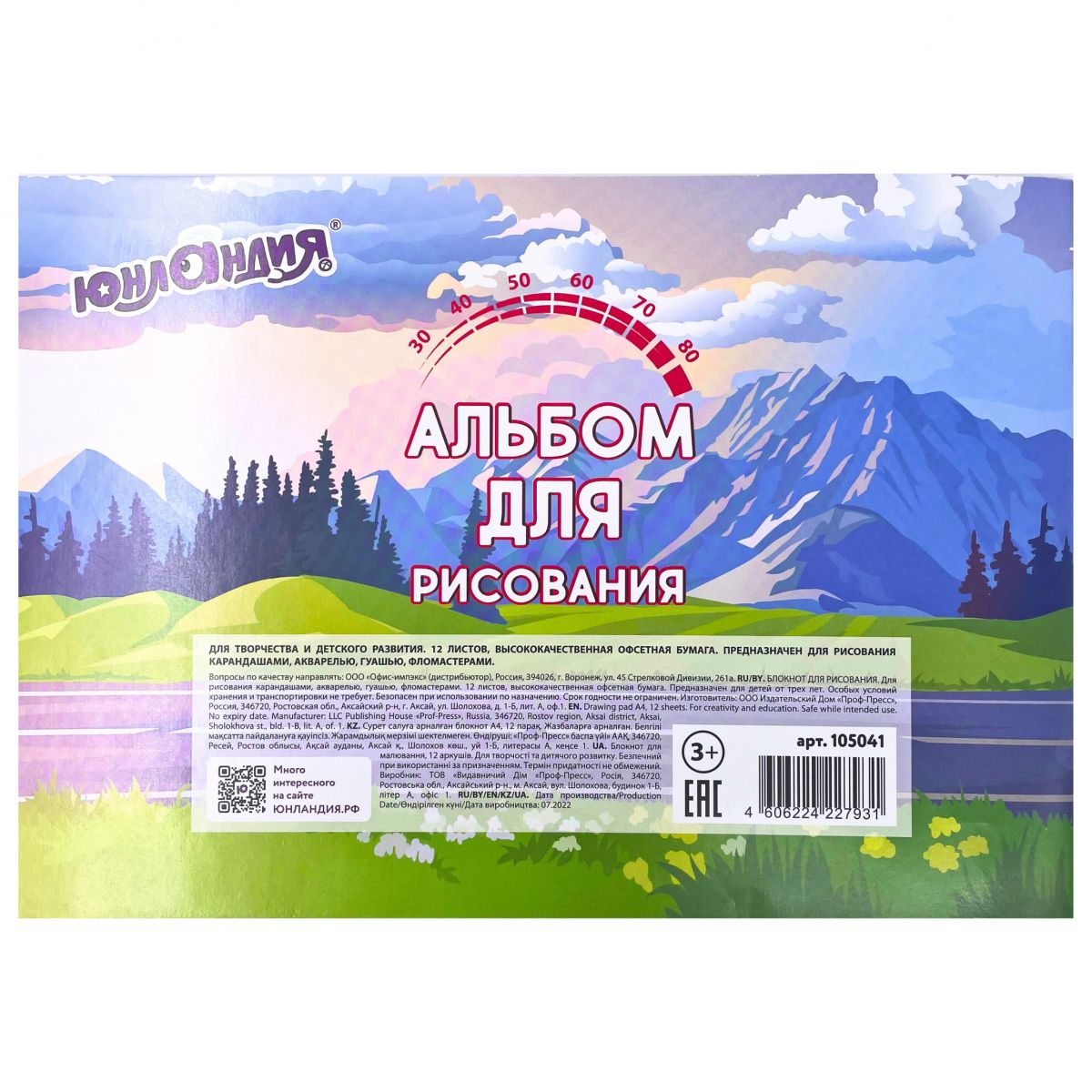 - Плотность бумаги: 100 г/м2 – идеально подходит для карандашей, фломастеров и красок