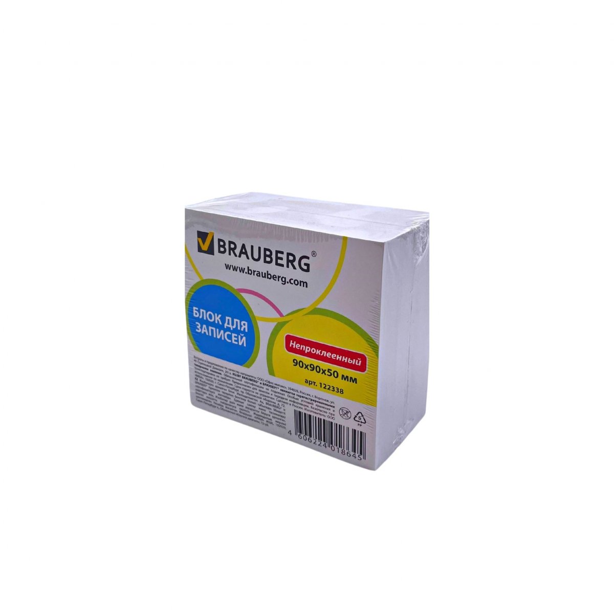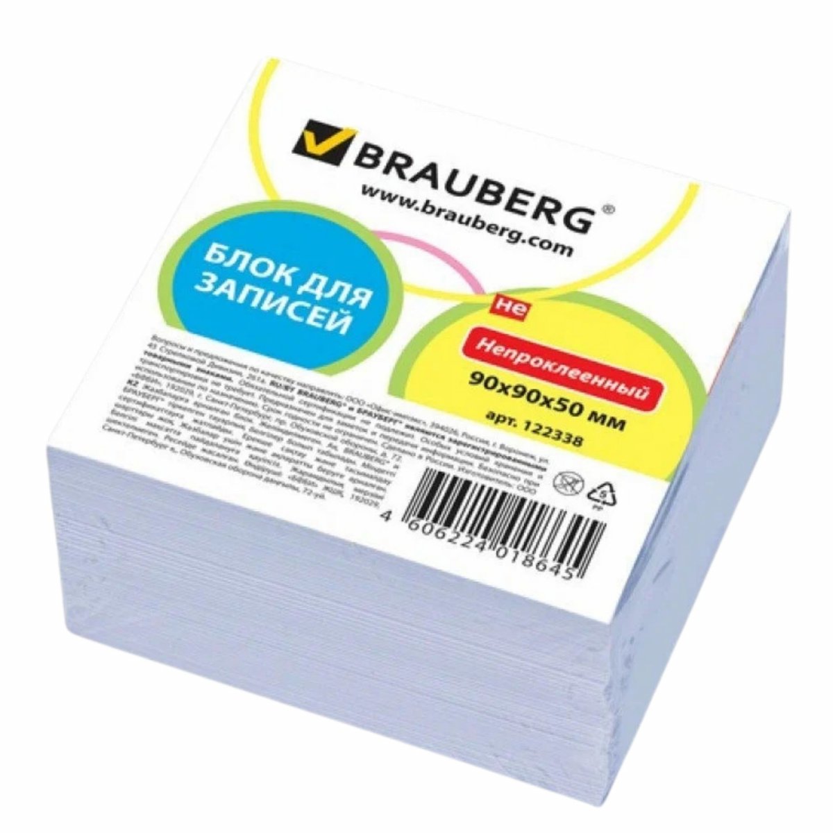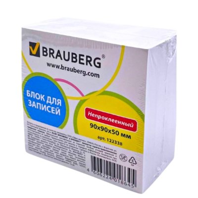 Блок для записей BRAUBERG непроклеенный, 9*9*5, белый(122338)/*24