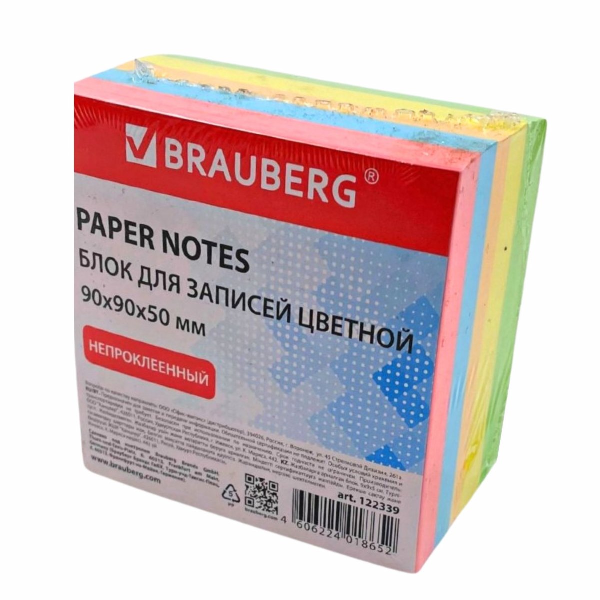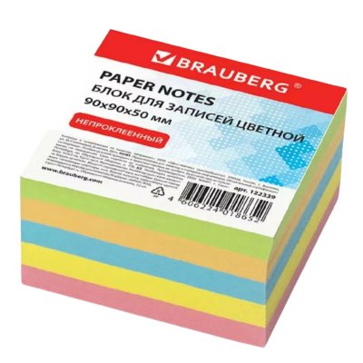 Блок для записей BRAUBERG непроклеенный, 9*9*5, цветной(122339)/*24
