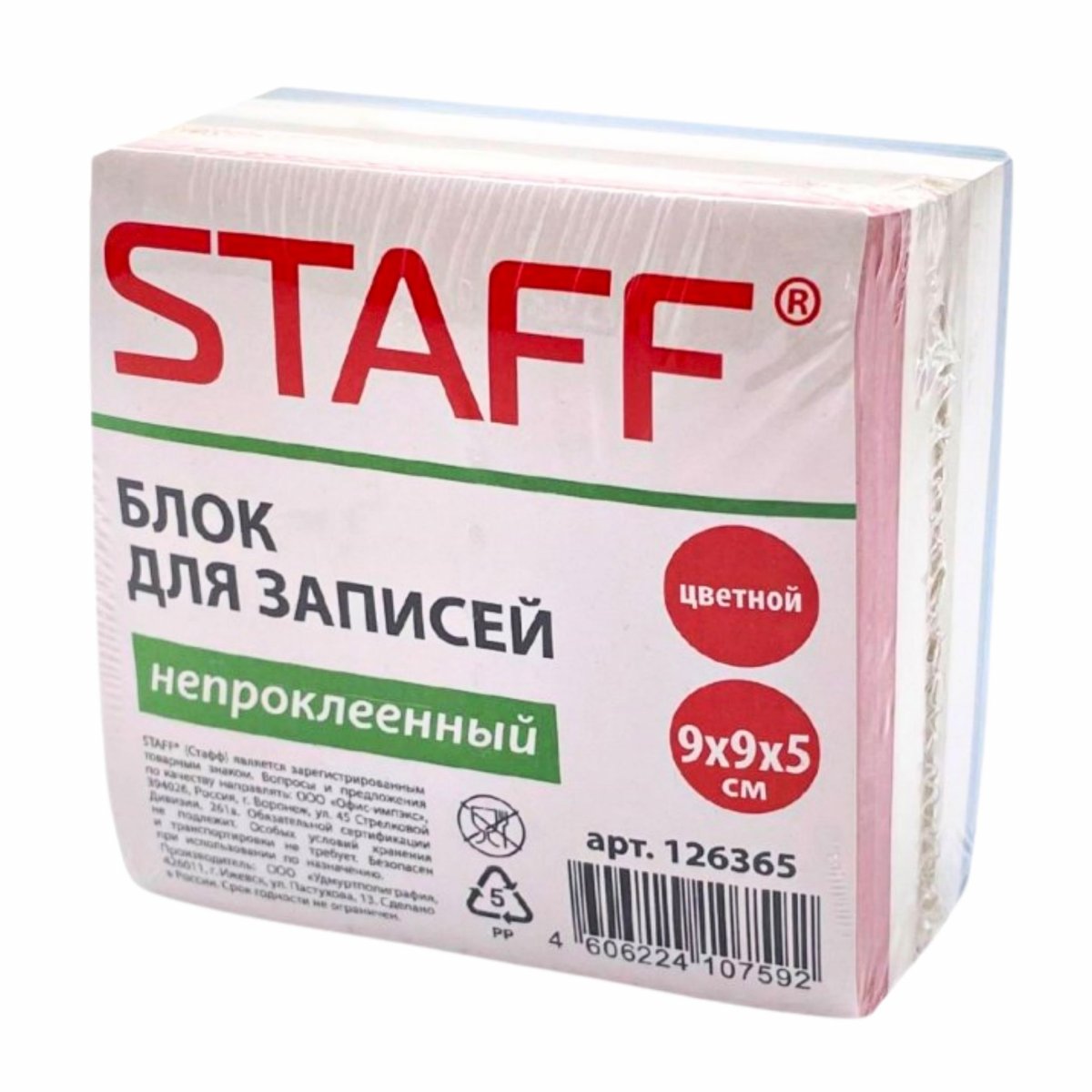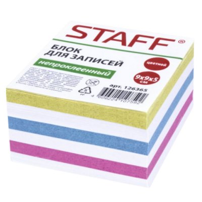 Блок для записей STAFF непроклеенный, 9*9*5,цветной(126365)/*36