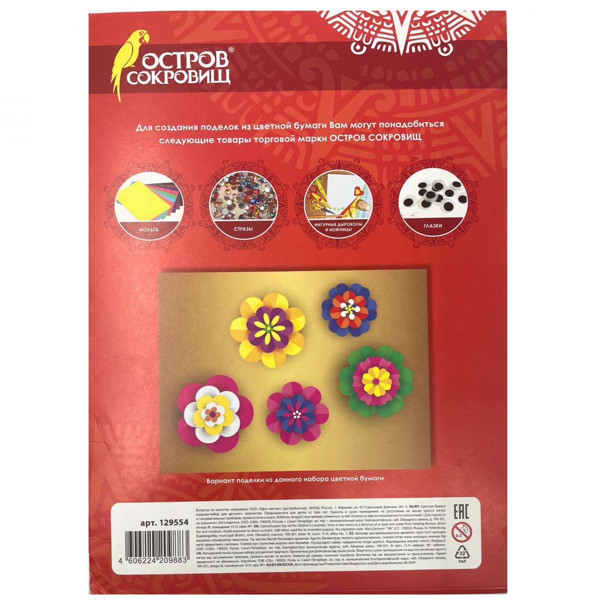 Перед использованием рекомендуется слегка увлажнить бумагу, чтобы избежать растекания красок и чернил. Для достижения наилучших результатов используйте качественные краски и маркеры. СОВЕТ:Для получения профессионального результата выбирайте качественные расходные материалы вместе с цветной бумагой от "ОСТРОВ СОКРОВИЩ".