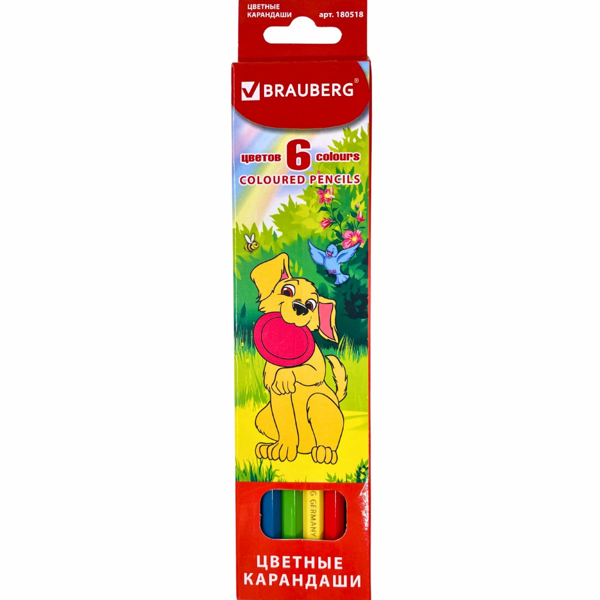 Карандаши цветные BRAUBERG "My lovely dogs", 6 цв.(180518)/24/480