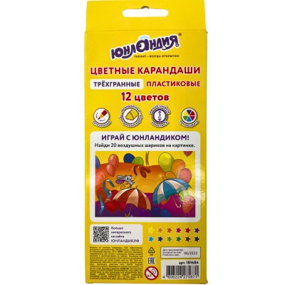 Карандаши цветные ЮНЛАНДИЯ "КАРНАВАЛ" 12 цв.трехгранные(181684)/1/6/240