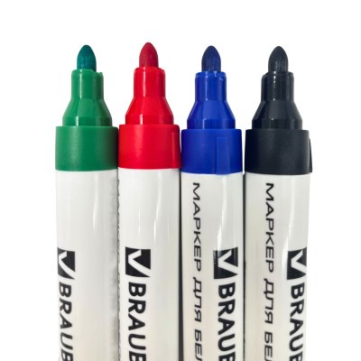 Набор маркеров BRAUBERG — оптимальное решение для учебных заведений, офисов и творческих студий. Удобный набор из четырех разноцветных маркеров обеспечивает комфортную и быструю запись информации.Преимущества набора: