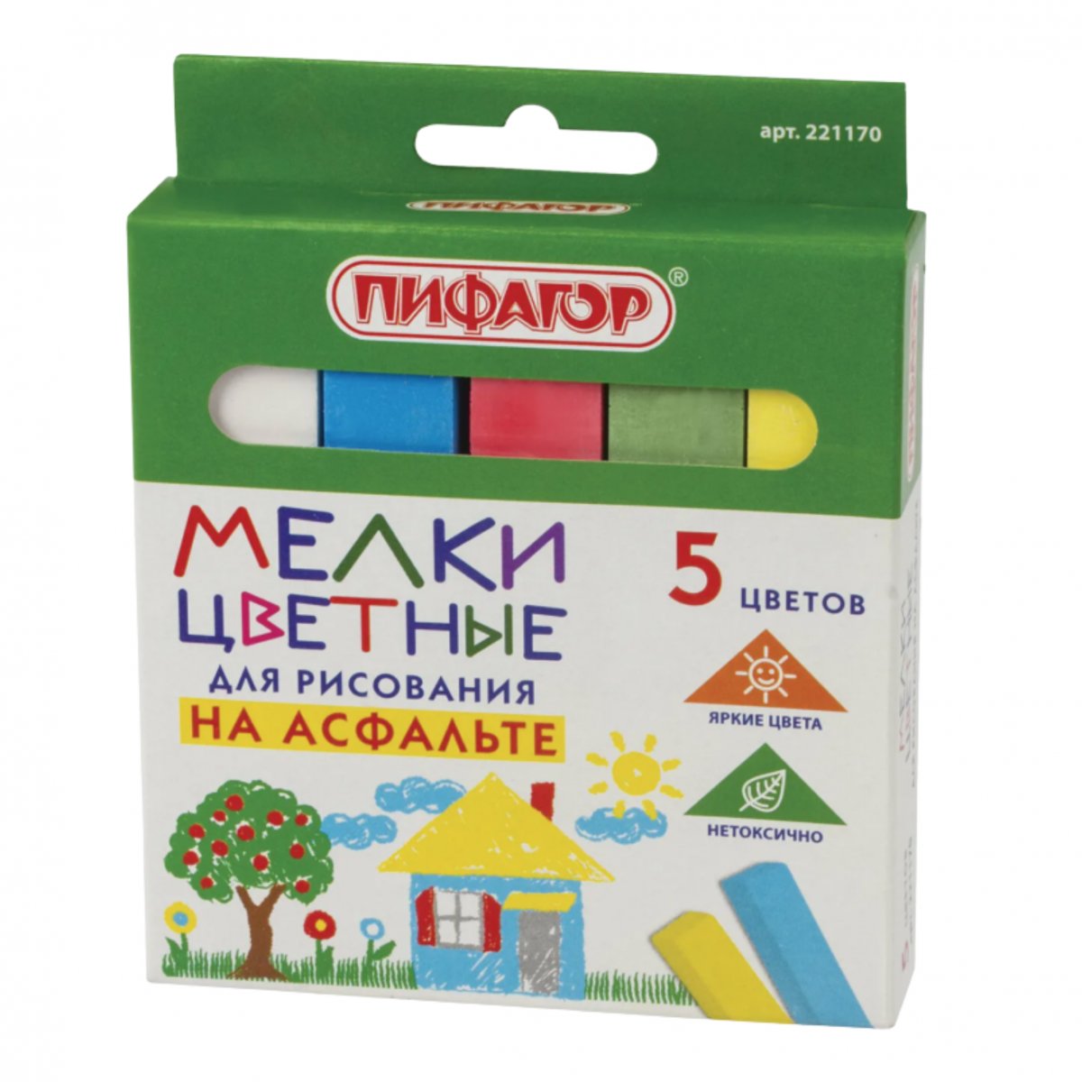 Мел цветной ПИФАГОР, 5шт,для рисования на асфальте, квадратный(221170)/60