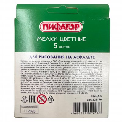 - Безопасность: мел изготовлен из экологически чистых материалов, безвреден для здоровья и окружающей среды.