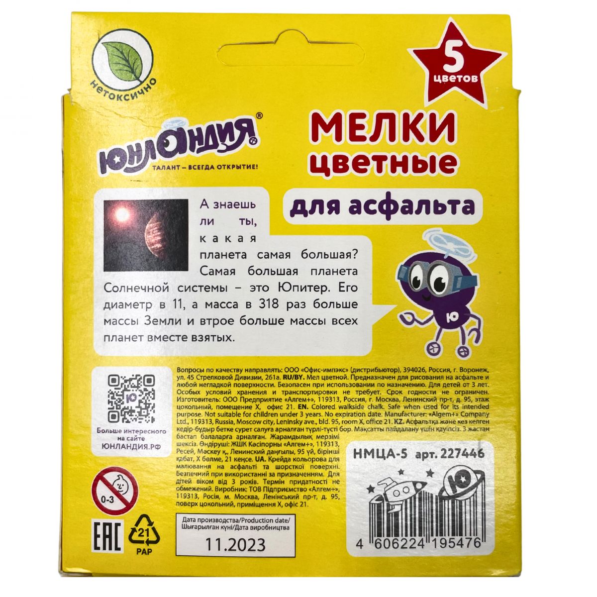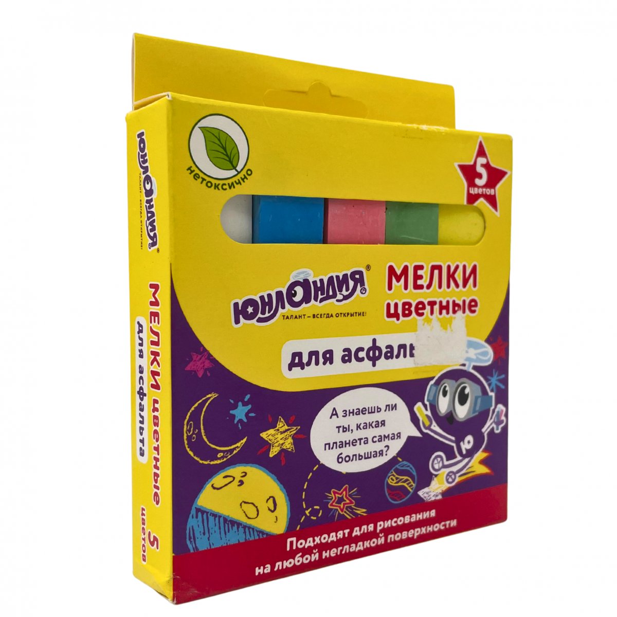 Мел цветной "ЮНЛАНДИК И КОСМОС", НАБОР 5 шт для рисования на асфальте, квадрат.(227446)/20/60