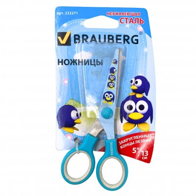 Ножницы BRAUBERG «Пингвины», 130 мм — отличный помощник в быту и на кухне.Преимущества: