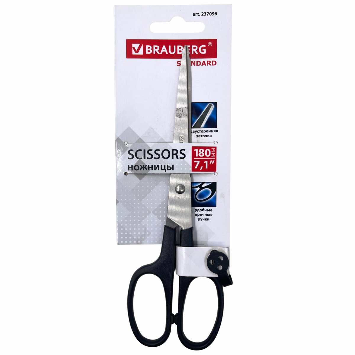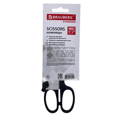 Ножницы BRAUBERG "Standard" 180 мм, черные,2-х сторонняя заточка,(237096)/12/240