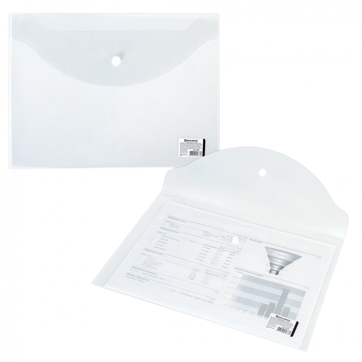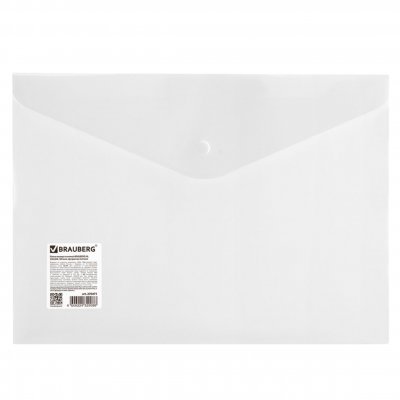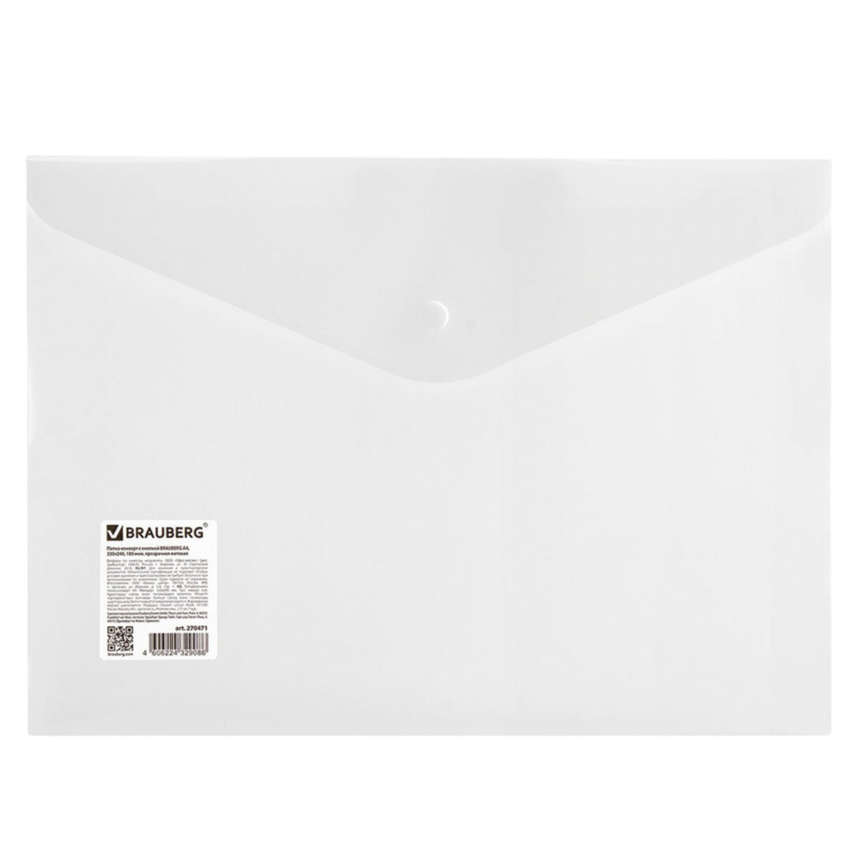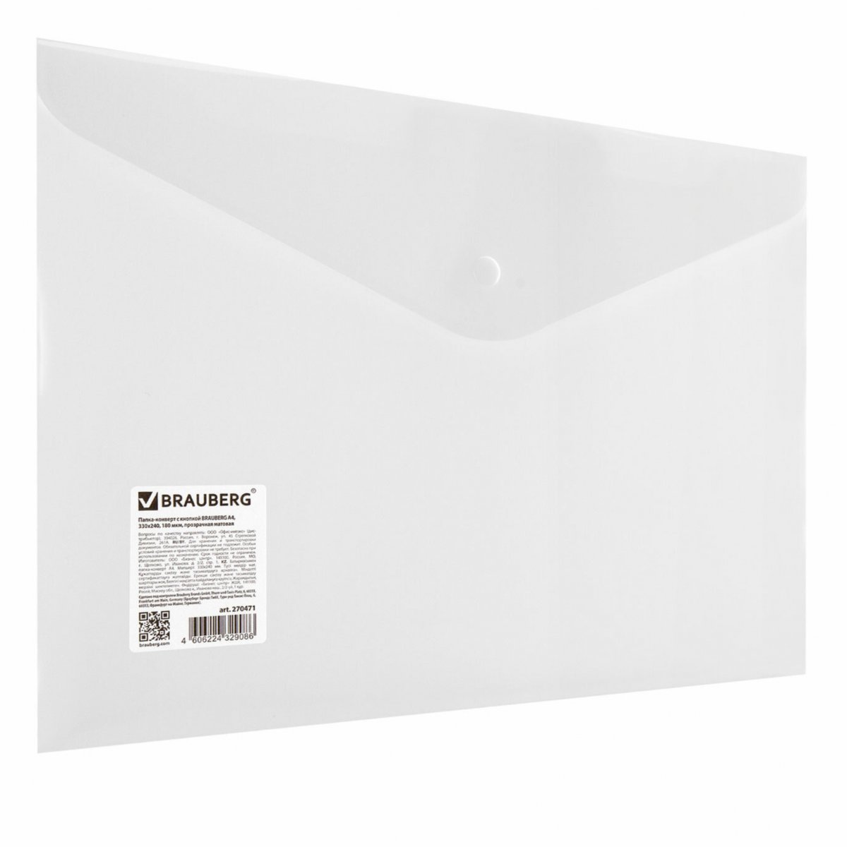 Папка-конверт с кнопкой BRAUBERG A4, до 100 листов ПРОЗРАЧНАЯ(221638)/15/90