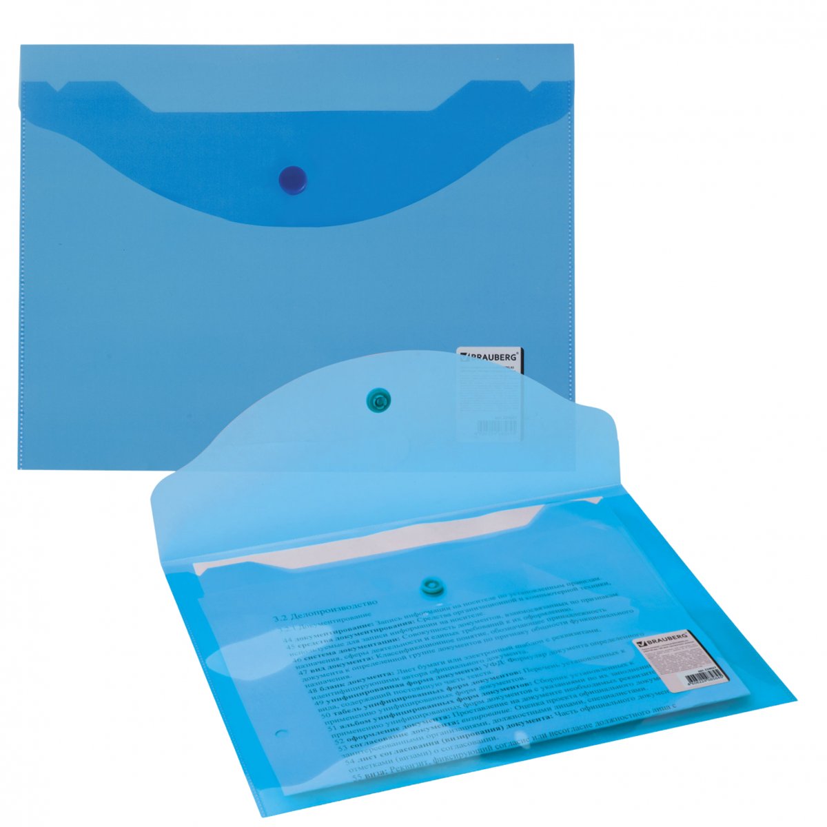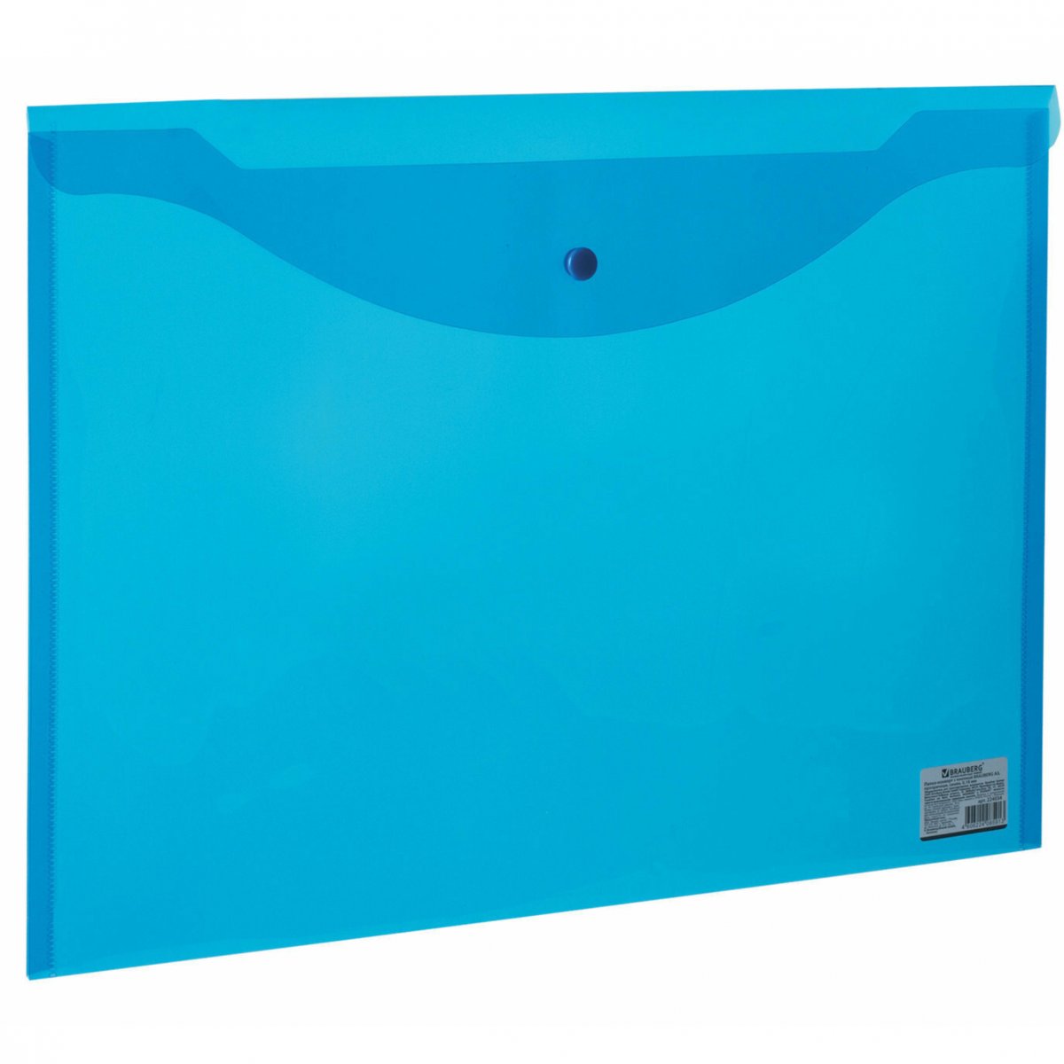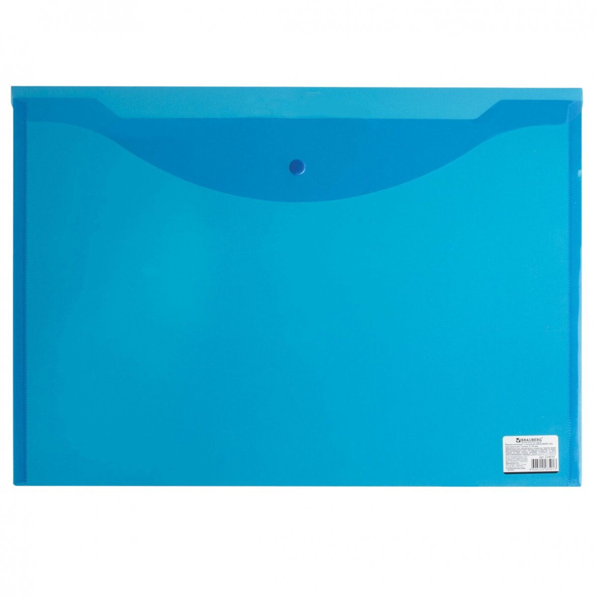 Папка-конверт с кнопкой BRAUBERG A4, до 100 листов СИНЯЯ(221637)/15/90