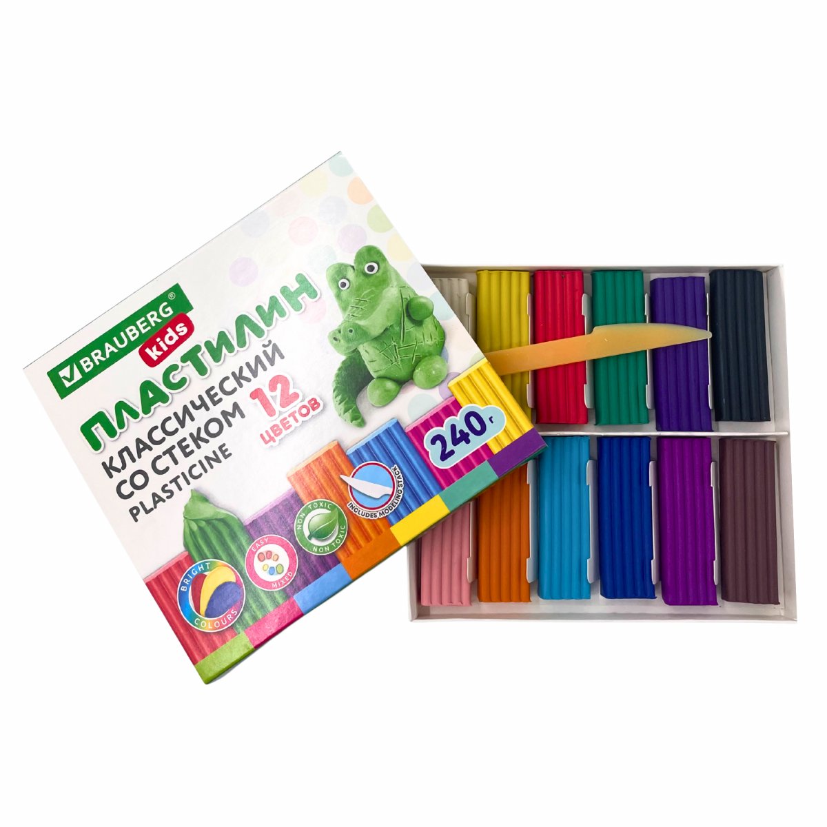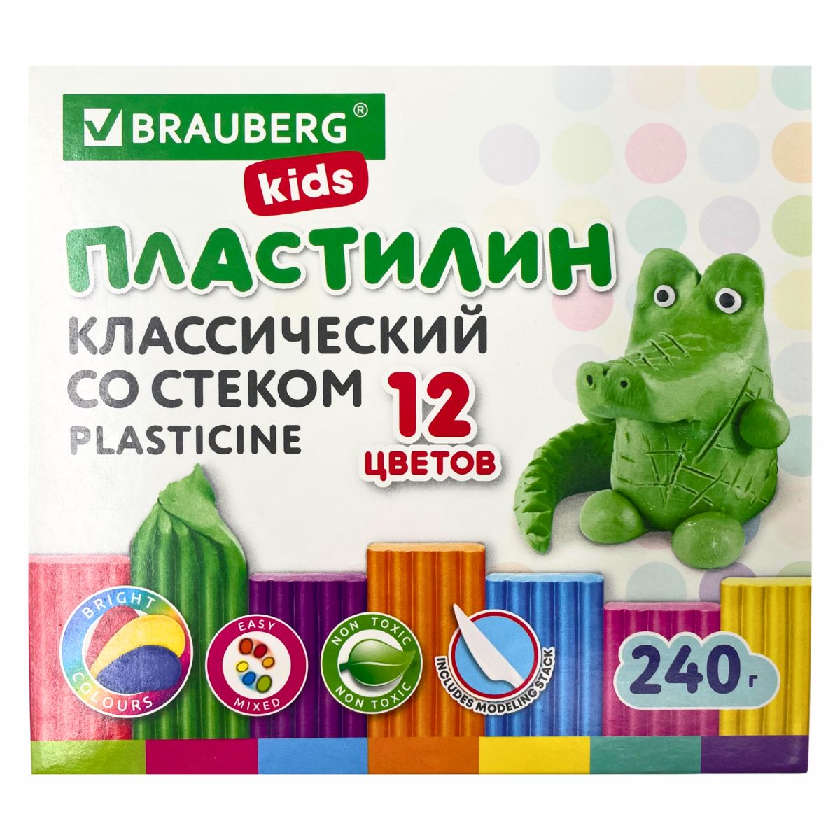 Пластилин классический BRAUBERG KIDS, 12 цветов, 240 грамм, стек, ВЫСШЕЕ КАЧЕСТВО,(106436)/16