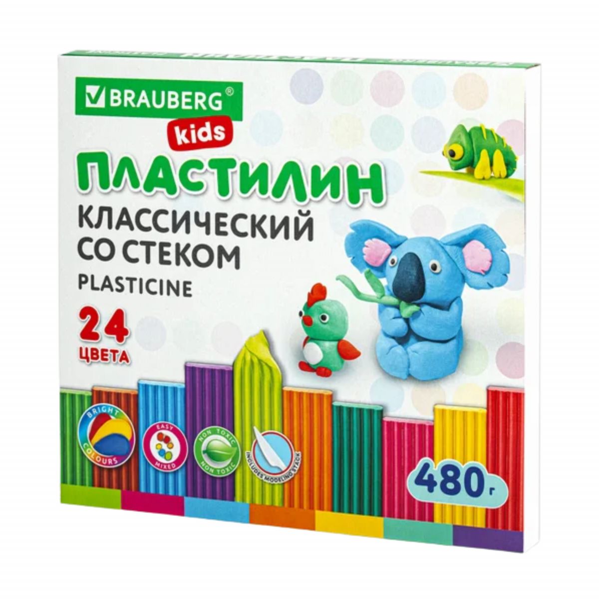 Пластилин классический BRAUBERG KIDS, 24 цвета, 480 грамм, стек, ВЫСШЕЕ КАЧЕСТВО,(106437)/8