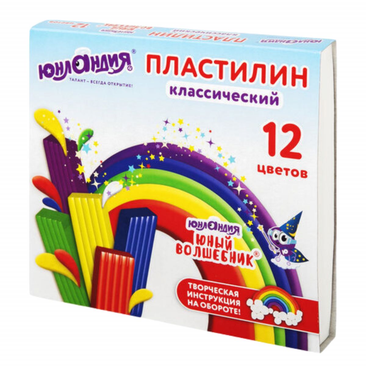 Пластилин классический ЮНЛАНДИЯ "ЮНЫЙ ВОЛШЕБНИК", 12 цветов, 240 г, СО СТЕКОМ,(106506)/16