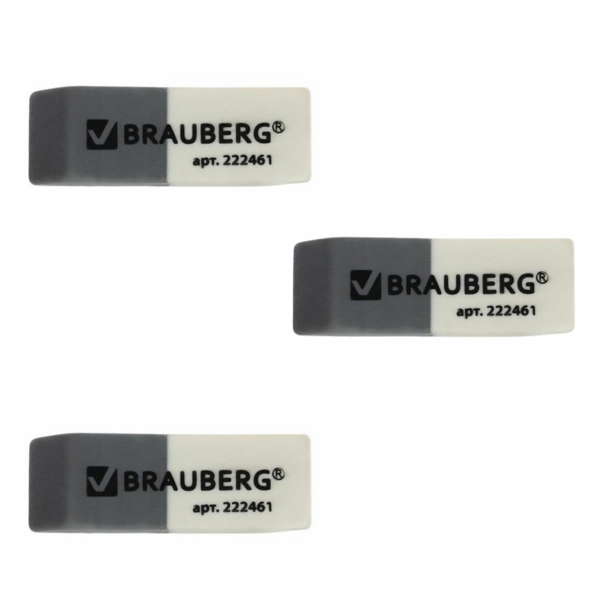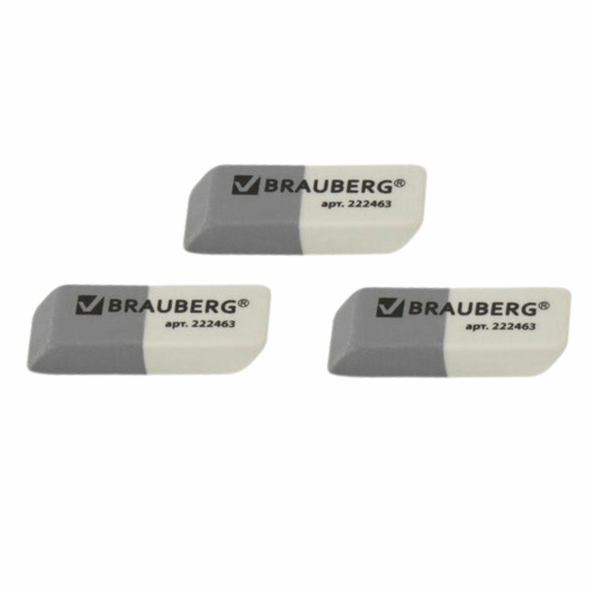 Резинки стирательные BRAUBERG, набор 3шт., 41*14*8мм, серо-белые(222463)/24/960