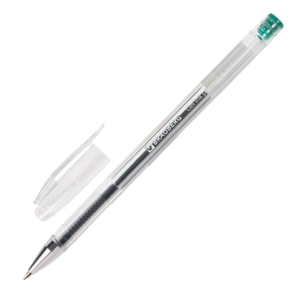 Ручка гелевая BRAUBERG "Jet", корпус прозрач.,толщ.письма ЗЕЛЕНАЯ 0,5мм(141021)/12/1728