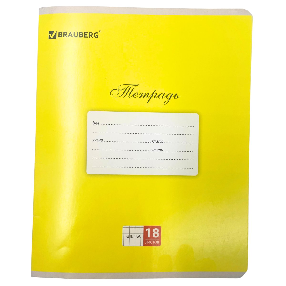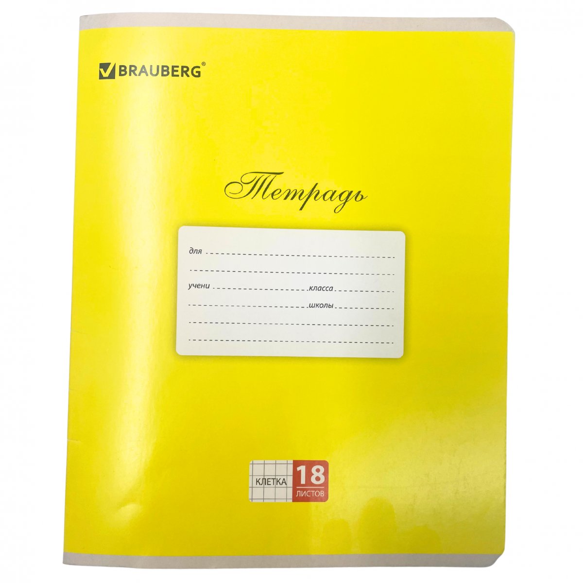 Тетрадь 18л. BRAUBERG клетка.,картон ЖЕЛТАЯ (Классика)(104728)/20/200