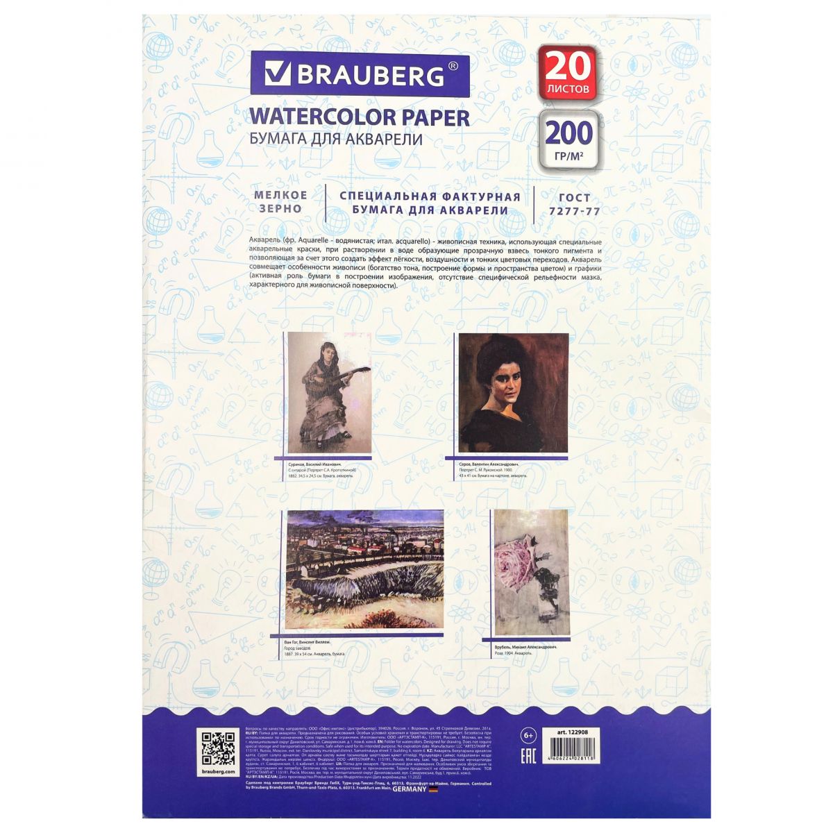 Папка для акварели А3 297*420мм, 20л BRAUBERG плотность 200г/м2(122908)/10