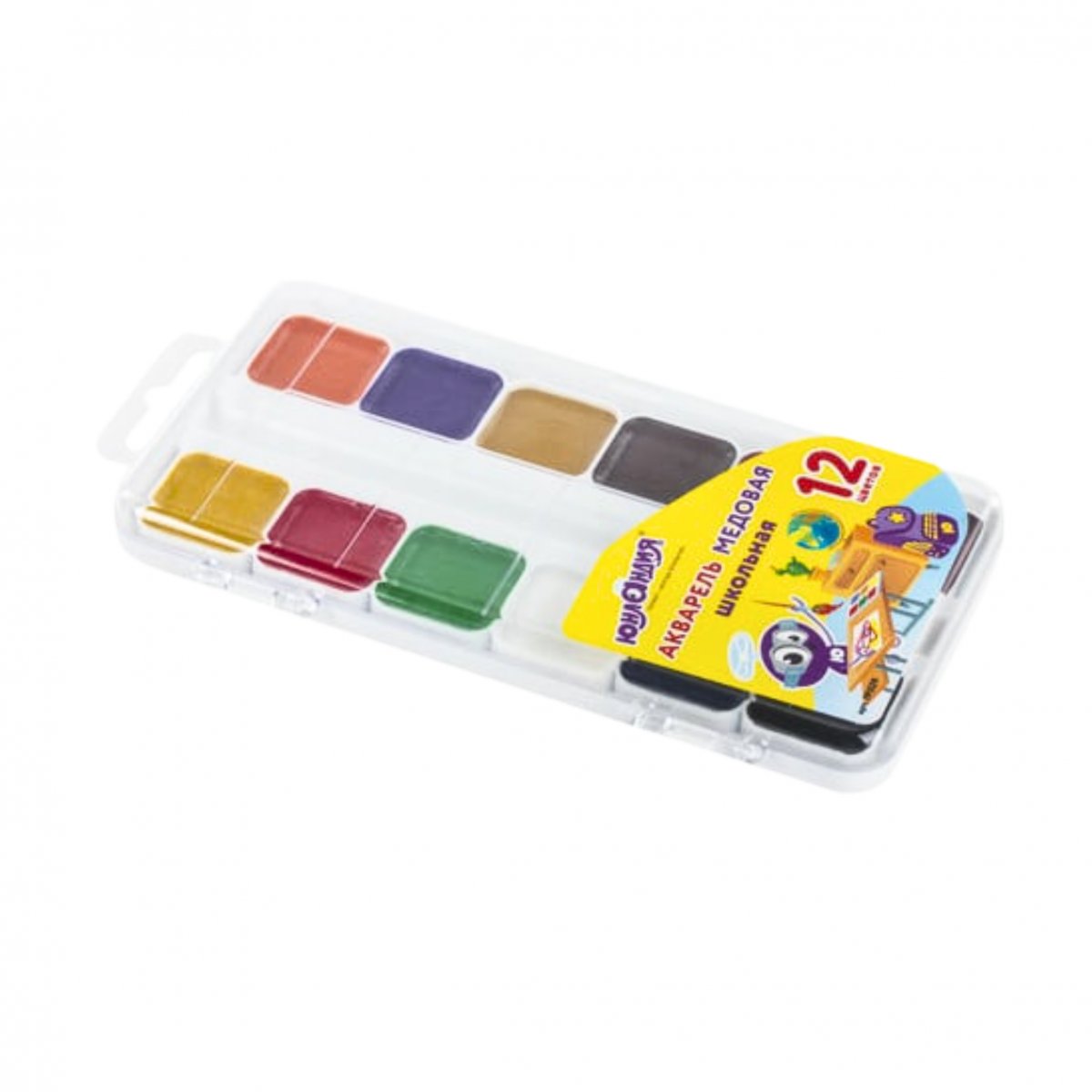 Краски акварельные ЮНЛАНДИЯ "ШКОЛЬНЫЕ", 12 цветов, медовые, с кистью (191527)/16