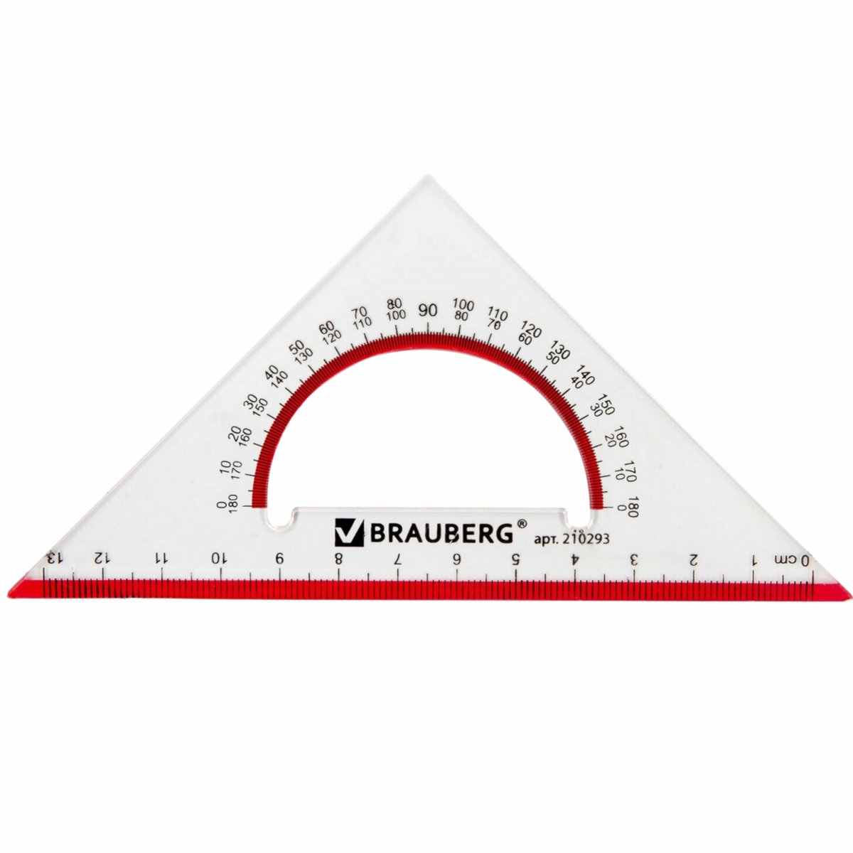Треугольник BRAUBERG "Crystal", с транспортиром 45*13см прозрач.(210293)/48/1152