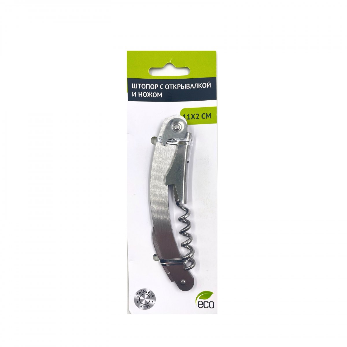 Штопор с открывалкой и ножом 11*2см нержавеющая стальVETTA(884-524)1/30