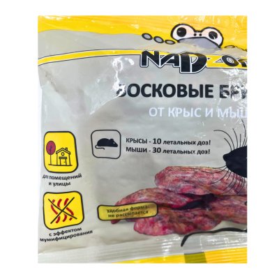 Восковые брикеты от мышей и крыс от бренда Nadzor – это эффективное средство борьбы с грызунами. Продукт представляет собой специальные восковые брикеты, которые благодаря своему составу и форме являются особенно привлекательными для мышей и крыс.