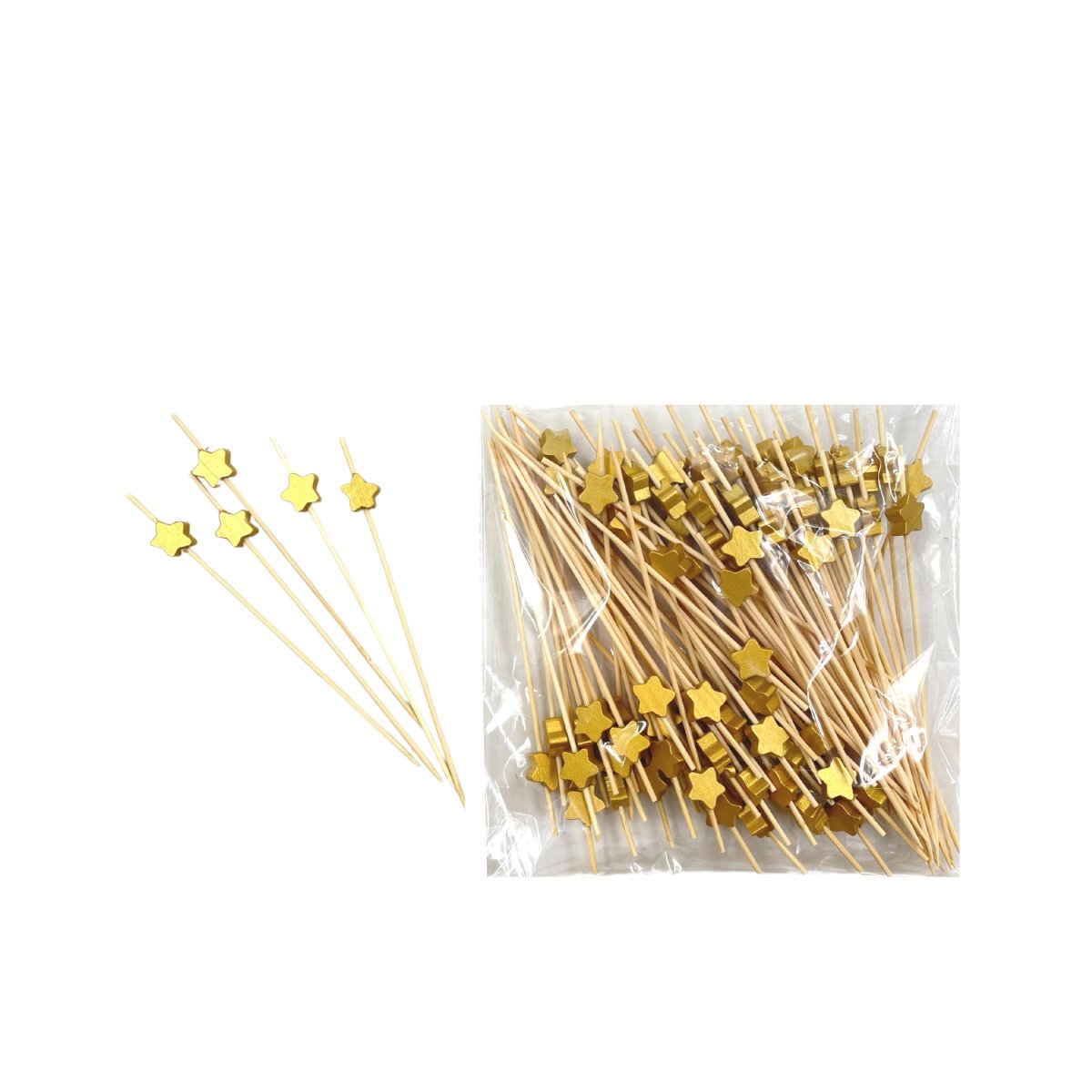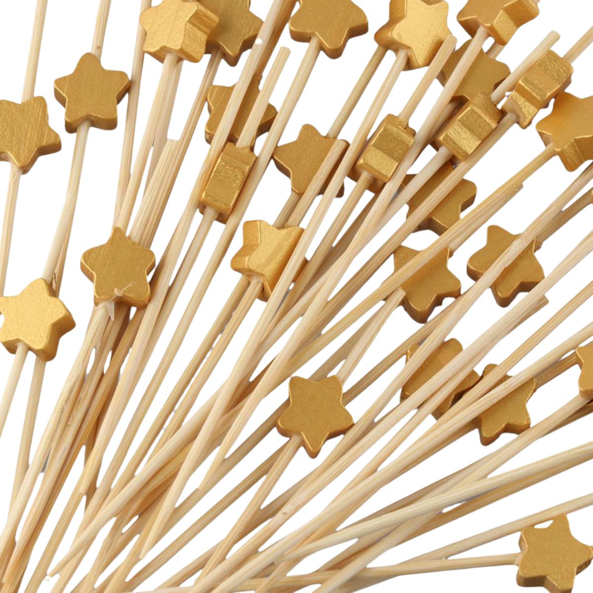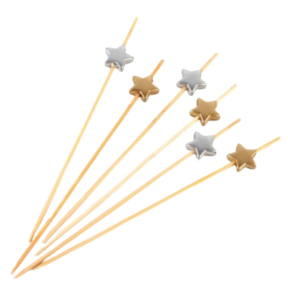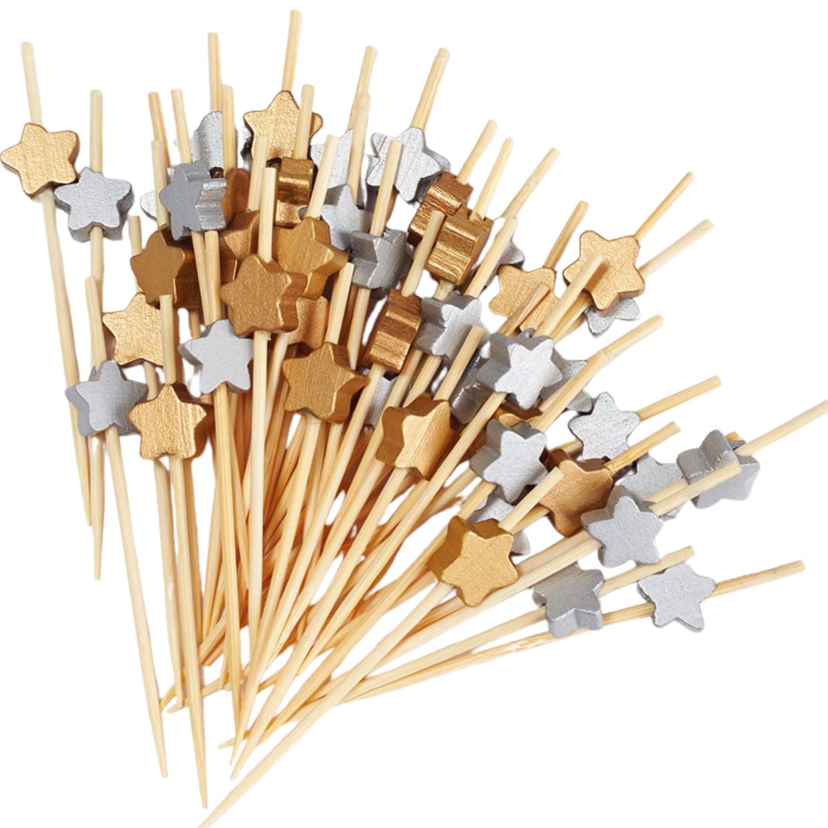 Декоративные пики из бамбука"Звезда"Золото, Серебро 120мм,100шт в пакете/40