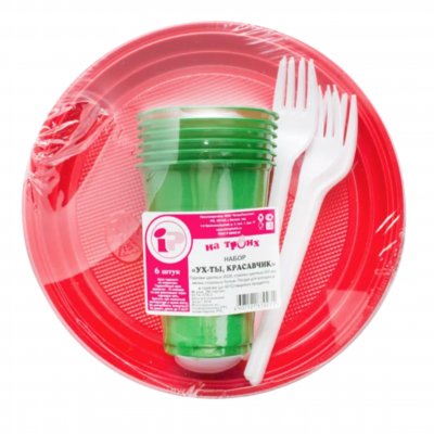 Набор одноразовой пластиковой посуды "Ух ты, красавчик"(6 персон)/40