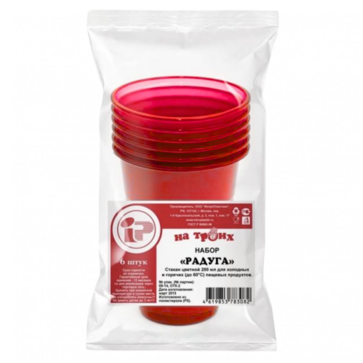 Набор одноразовых пластиковых,ЦВЕТНЫХ стаканов 200мл(6шт)"Радуга"/210