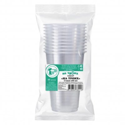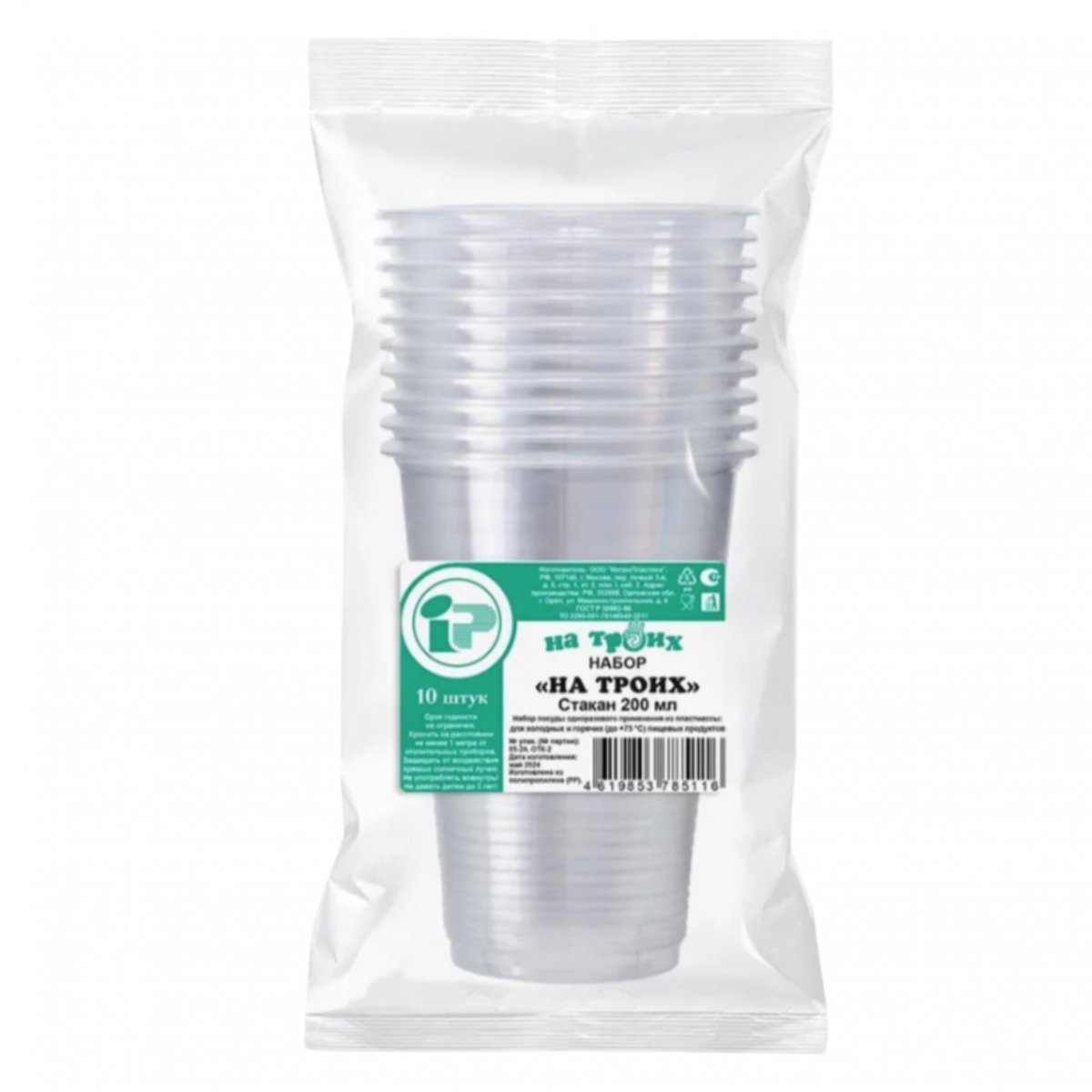 Набор одноразовых пластиковых стаканов 200мл(10шт)"На троих"/140