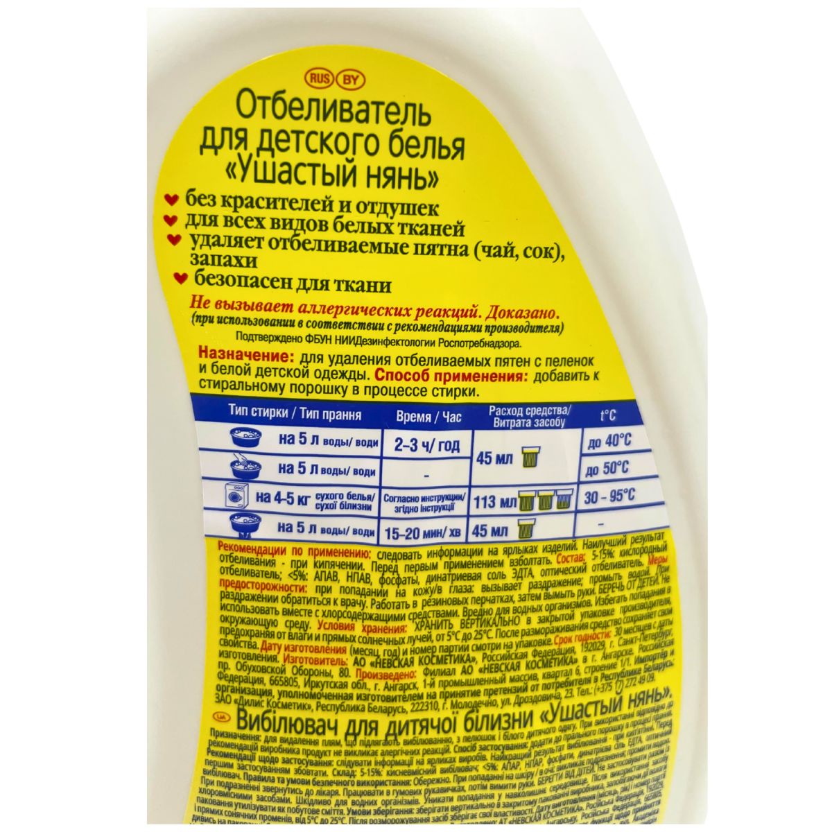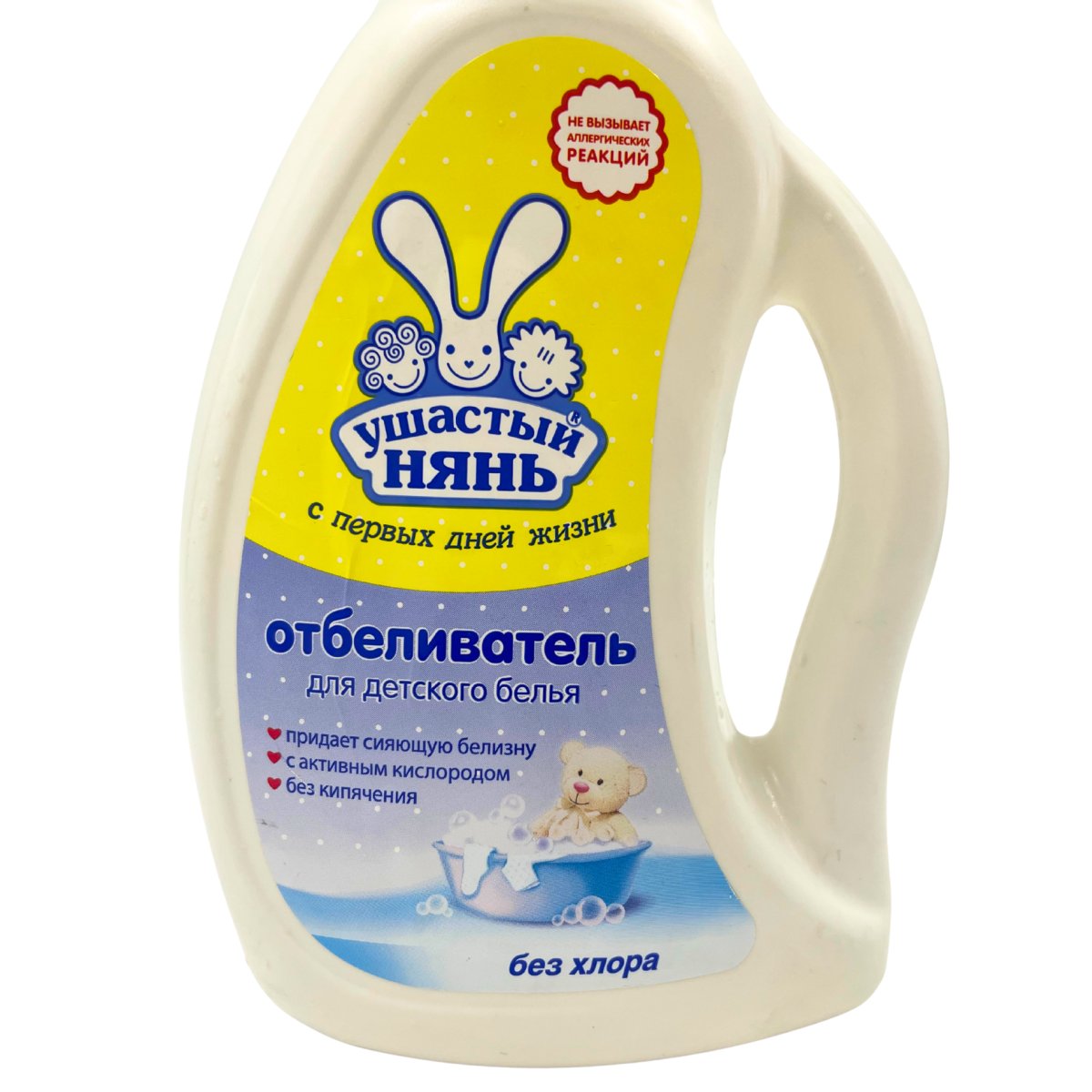 Отбеливатель «Ушастый нянь» бережно очищает ткани, сохраняя их цвет и структуру даже после многократной стирки. Подходит для детской одежды и постельного белья.Экологичность и гипоаллергенность